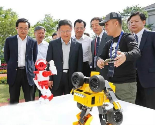 开幕式前,郑栅洁一行参观了机器人主题公园,从载歌载舞的变形机器人到能够识别微表情的营业服务机器人,从呆萌可爱的机器宠物狗到船舶除锈机器人,郑栅洁兴致勃勃地一路参观体验,与机器人研发团队和企业负责人亲切交谈,了解产品研发和市场开拓情况。随后,郑栅洁来到智能制造展览展示区,考察各种智能装备性能特点和市场应用情况。郑栅洁希望全市广大企业和科研机构主动抢抓新一轮科技革命和产业变革的机遇,广泛开展创新合作、技术研发,积极推动工业化和信息化深度融合,努力把机器人产业培育成宁波的优势产业。